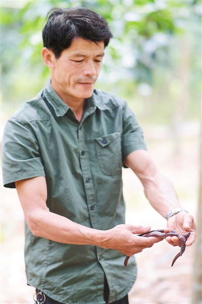 “它们是参环毛蚓,因产地主要在两广地区,又被称为广地龙,是极受市场青睐的一味药材。”北大镇社会事务服务中心负责人李章旺介绍,近年来,广地龙林下养殖被列为万宁八大特色产业之一,得到大力推广。