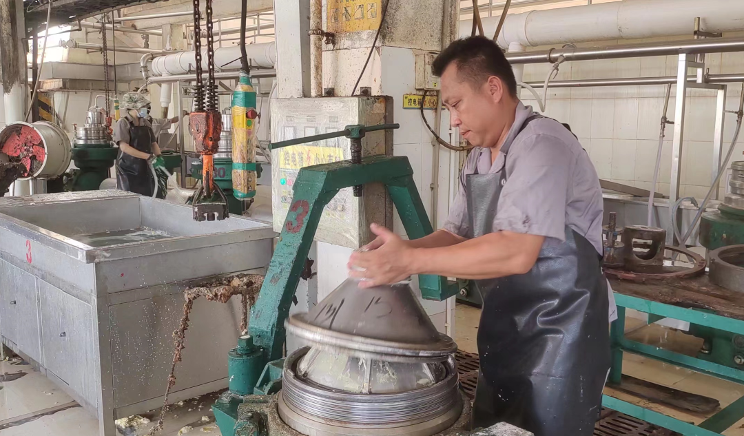 这看似简单的动作,其实需要有足够经验支撑。“无论在开机还是停机,都需要看准时机,在胶水运送至离心机运作时,还得时刻关注胶水是否溢出来。”陈晓萌说。