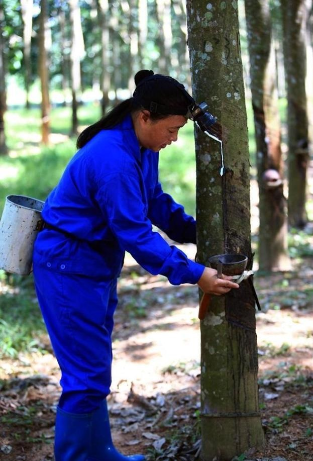 我是海胶集团龙江分公司生产技术部副部长、割胶总辅导员刘金凤。