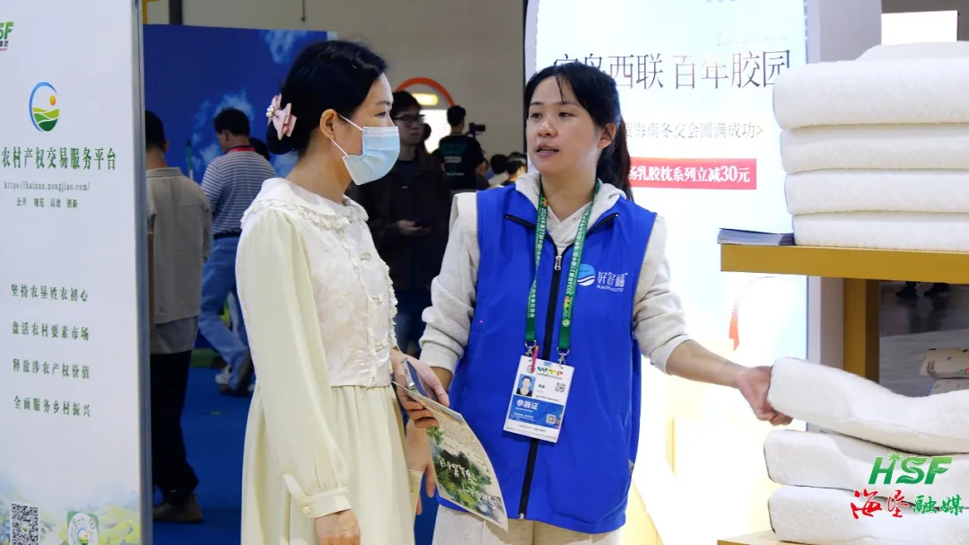 “这款乳胶枕的触感柔软,支撑力适中,回弹性能佳,感觉非常舒适。”12月7日,在冬交会海垦馆swag展区,市民何女士在体验了swag旗下“好舒福”乳胶枕后,对其赞不绝口。