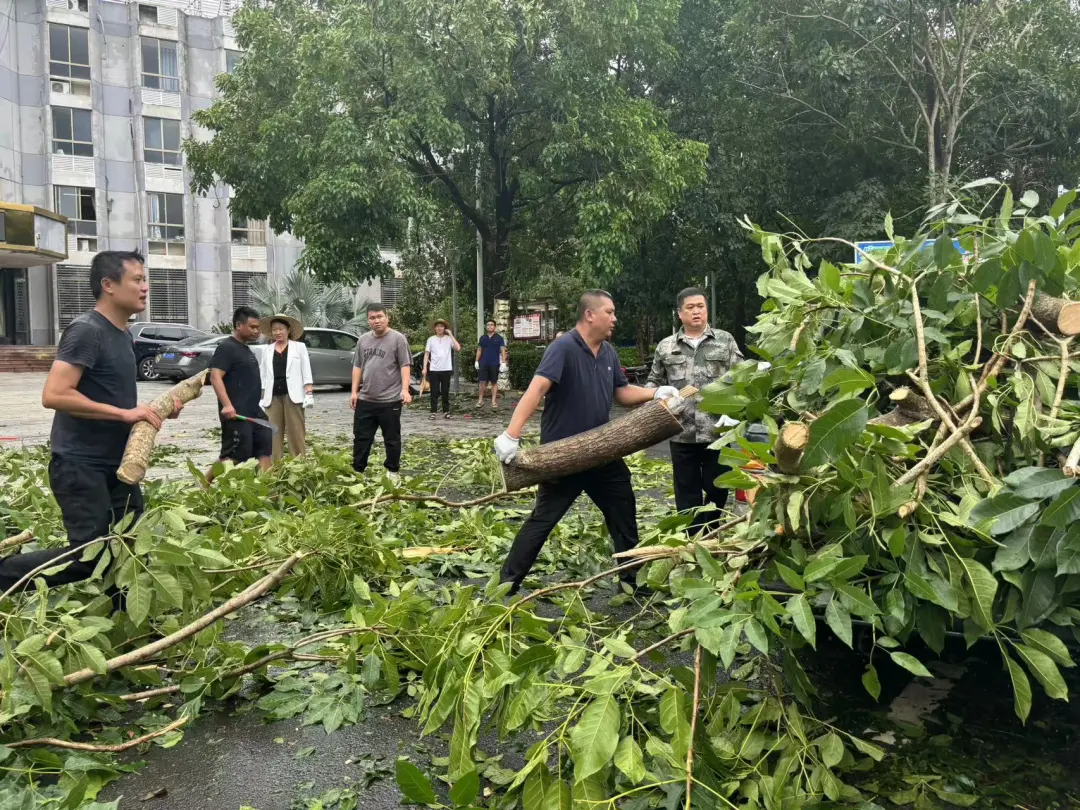 9月10日清晨,在swag西联分公司五星片区胜利队,队长吴清德与分公司抢险救灾队伍一起,与时间赛跑,把阻碍交通的倒伏树、断枝树逐一清除。
